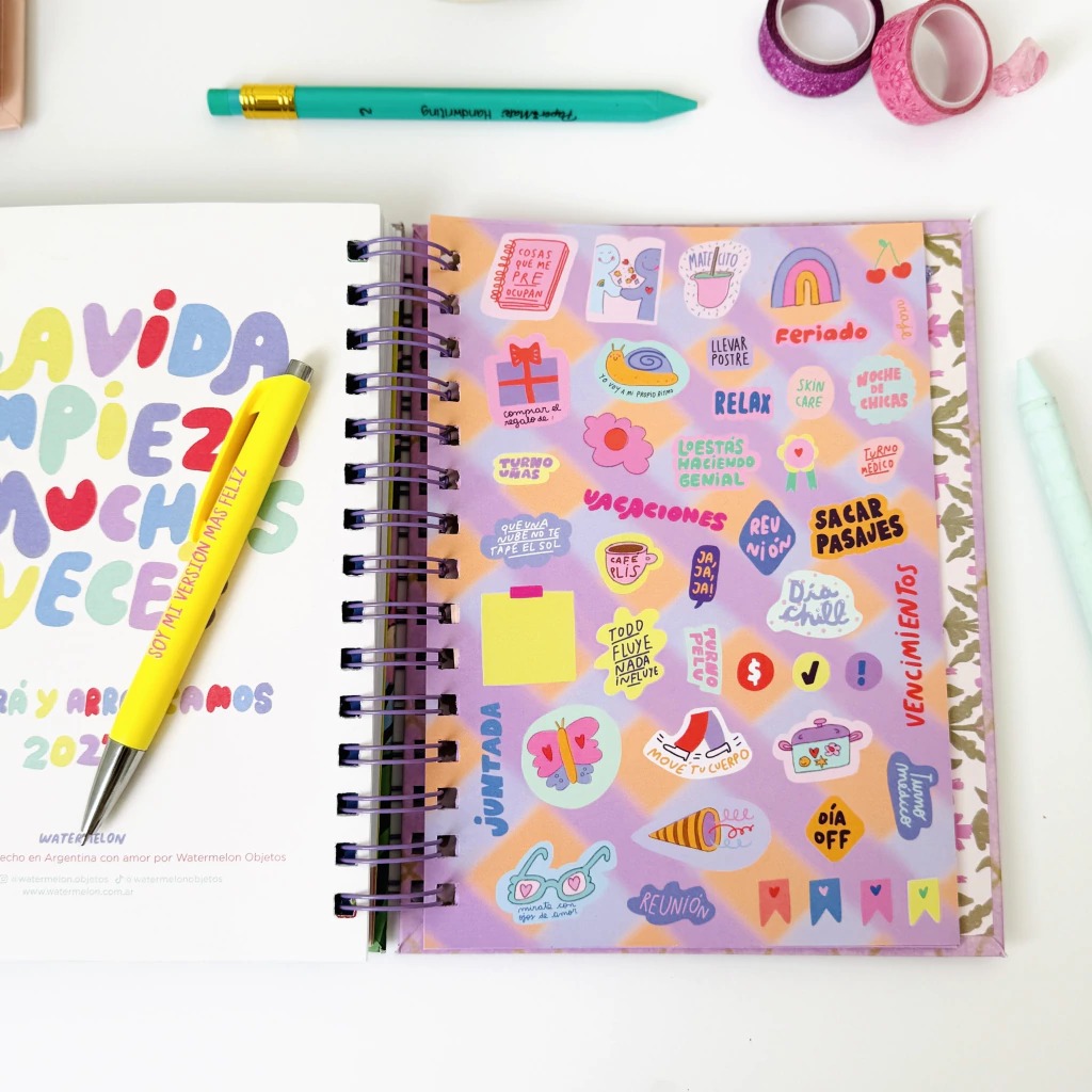 ✅ Portadas con frases y solapas en cartulina ✅ Calendario menstrual ✅ Balance 2025 y objetivos 2026 ✅ Calendario 2026 / 2027 ✅ Ficha de parciales y entregas ✅ Mi año en pixels 🧠 ✅ Planner mensual y anual ✅ Control de gastos, notas y control de hábitos mensual ✅ Ejercicios para reflexionar y ayudarte a cumplir tus metas ✅ Hojas para pintar 🎨 ✅ Muchas hojas de notas ✅ Retiraciones ilustradas ✅ Espacio para guardar usuarios y contraseñas 🔐 ✅ Checklist de viaje ✈️ ✅ Control de vacunas para tu mascota 🐾