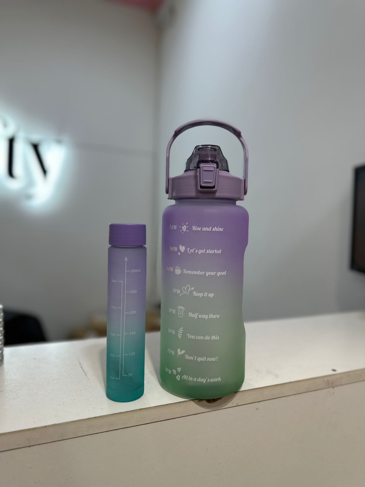 ( Su diseño es degrade, posee frases motivadoras y medidor. Trae una plancha de stickers con dijes para pegar en donde deseas. Ideal para uso escolar, deportes y diario). Medidas: