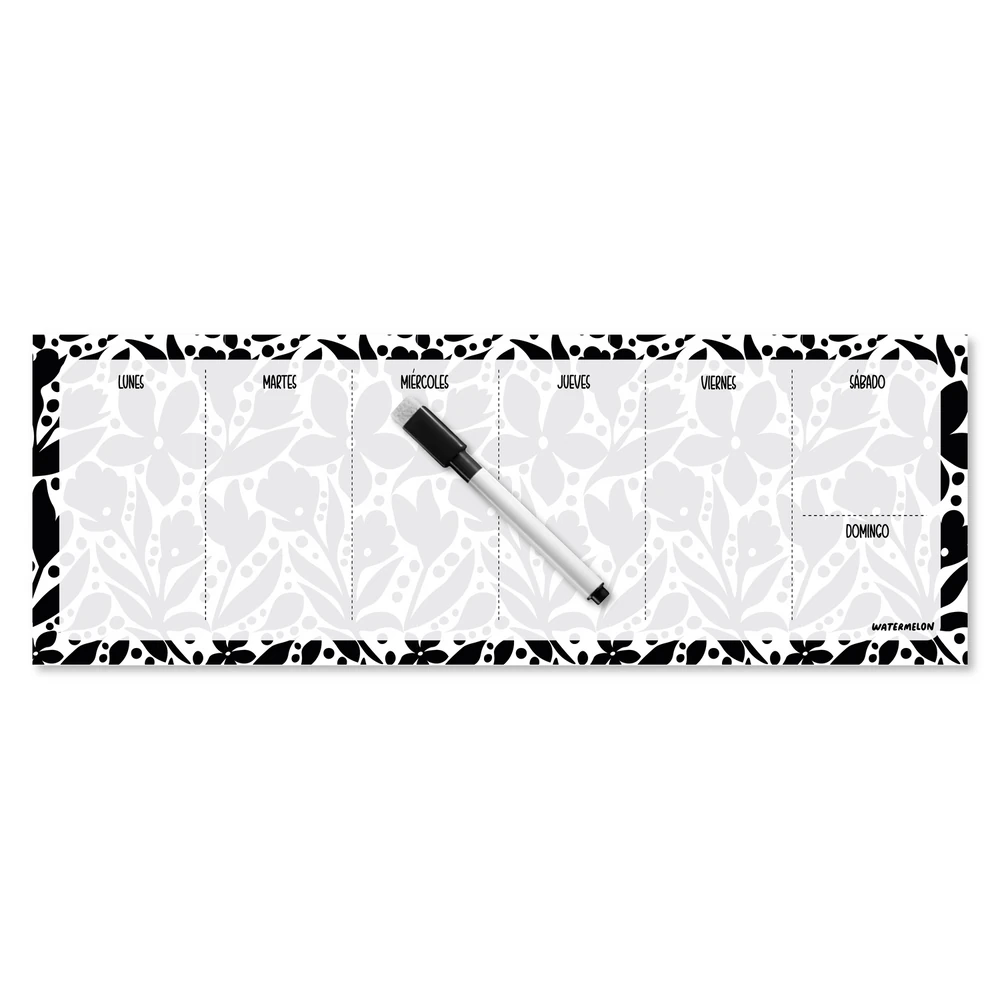 Incluye marcador de pizarra para escribir y borrar cuantas veces quieras. Medidas: 21 x 29 cm.
