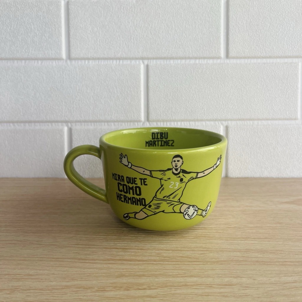 Taza de cerámica cónica de color azul, amarillo o rosa, con manija.