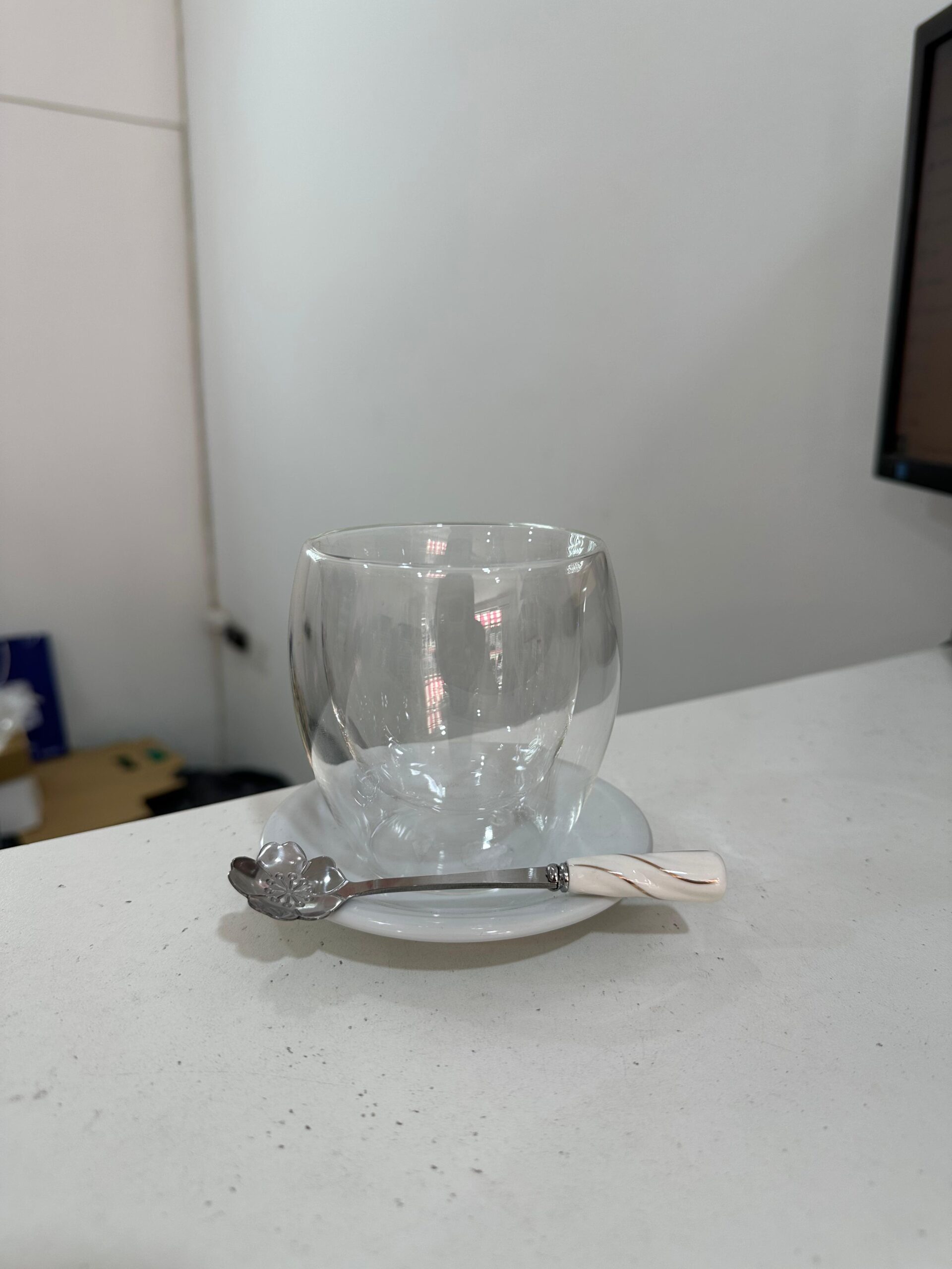 Vaso doble vidrio 250ml + plato + cuchara